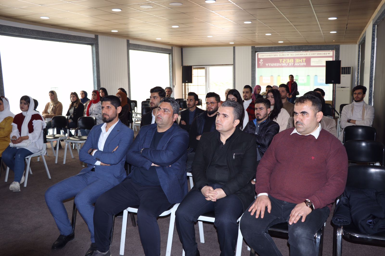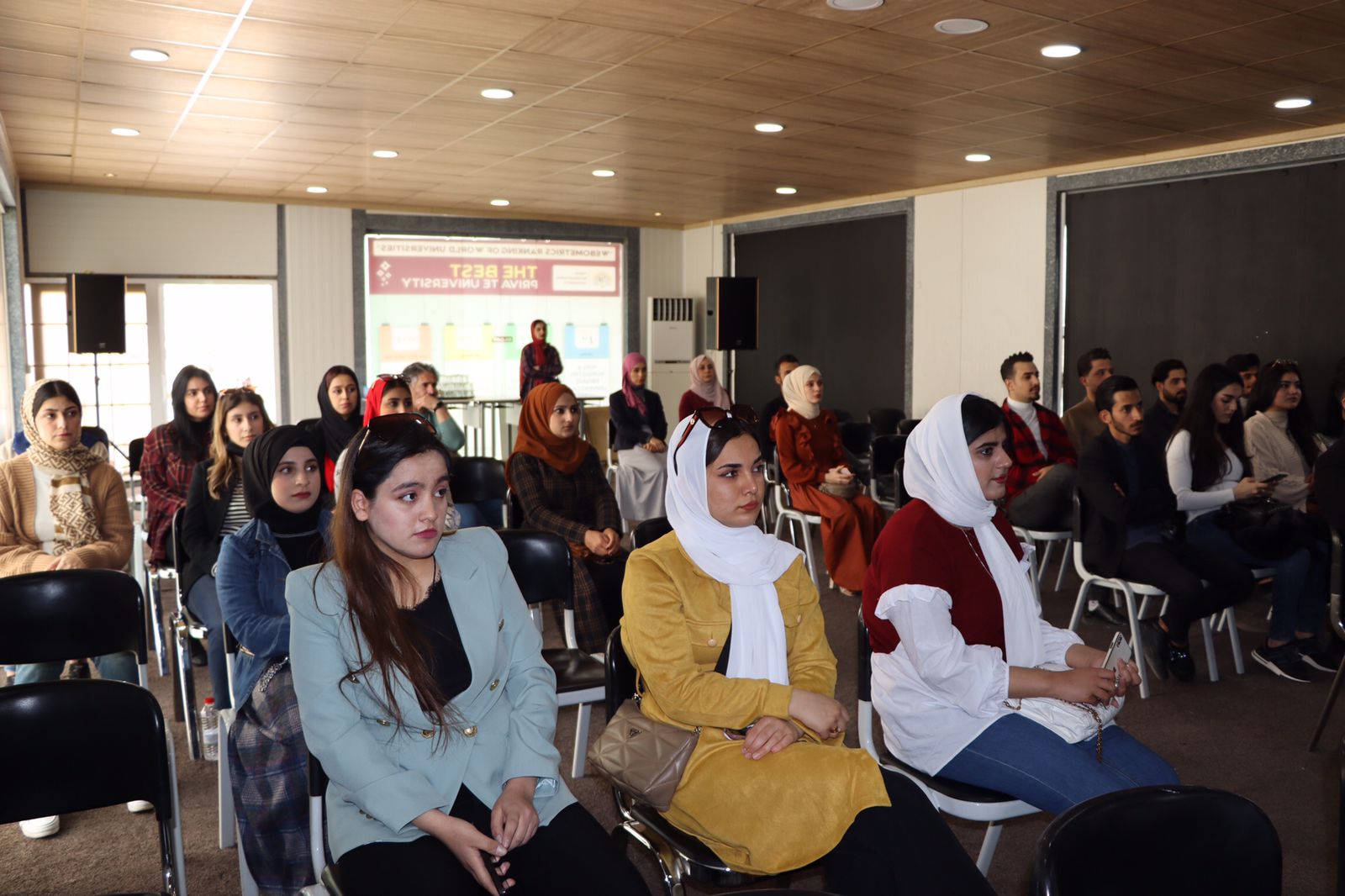 First, the event started with presenting a seminar by Ms. Yusra Mohammed, lecturer at IT department about the university achievements like those international certificates and ISO certificates that are awarded to the University in previous and recent years. And also, the departments were explained and introduced to the students.