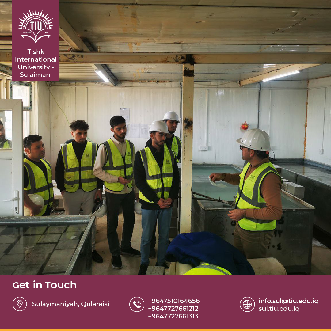 The Civil Engineering Department, Faculty of Engineering at Tishk International University-Sulaimani (TIUS) organized a site visit to Mayorca City in Sulaimani for students, providing them an opportunity to visit the site laboratory and the compound’s construction site. Mr. Diyari Mohammed, the Lab Administrator accompanied the students.