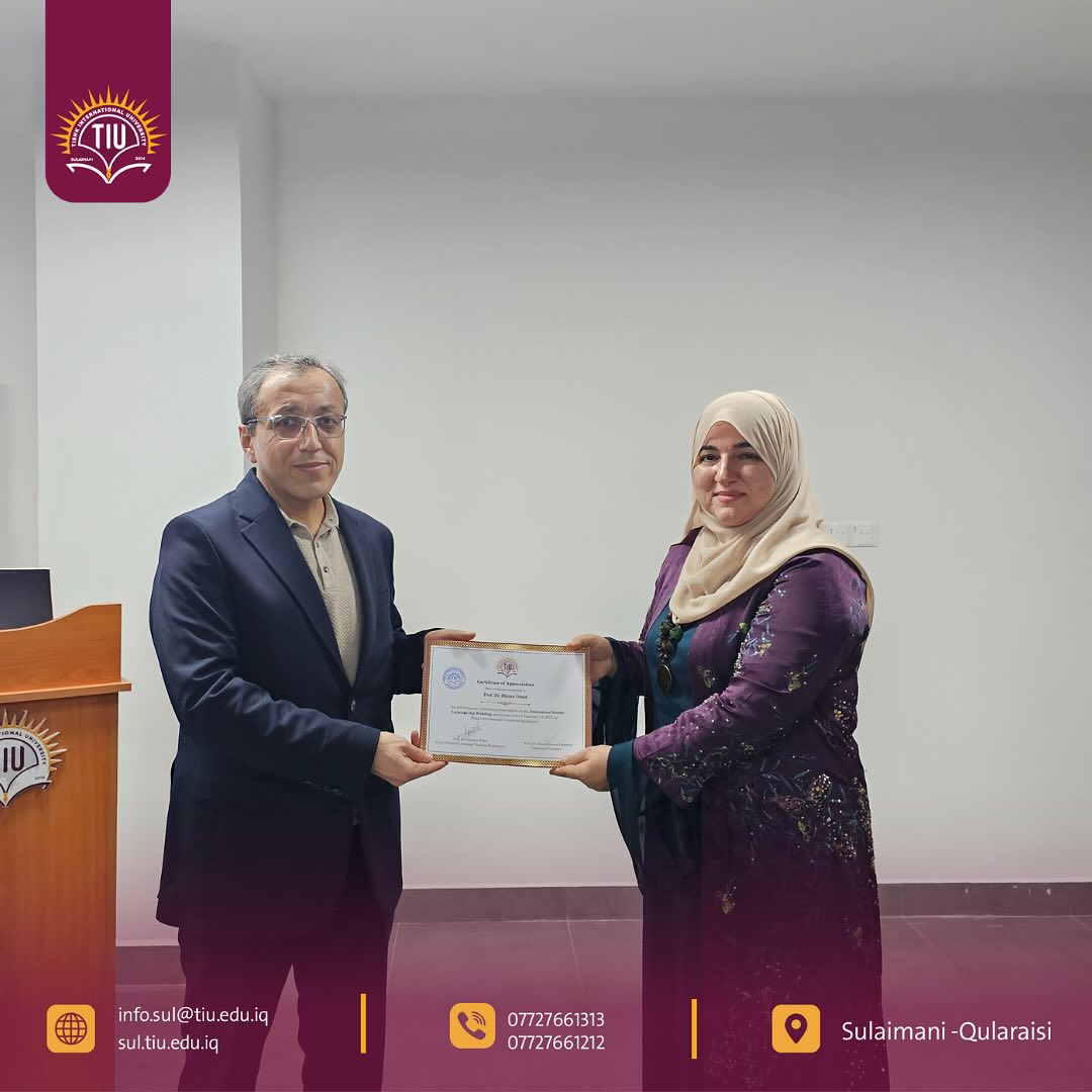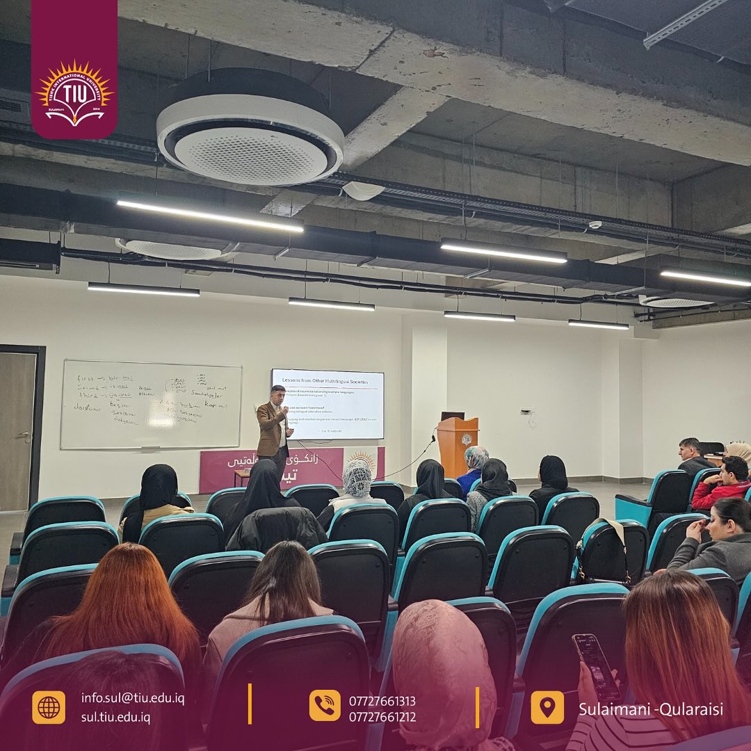 The English Language Teaching department at Tishk International University—Sulaimani successfully hosted an insightful international workshop titled “Kurdish as a Mother Tongue: Challenges, Policies, and Prospects” for the International Mother Language Day event on Tuesday, February 18, 2025. This workshop aimed to raise awareness of the importance of the mother tongue among students and the wider academic community.