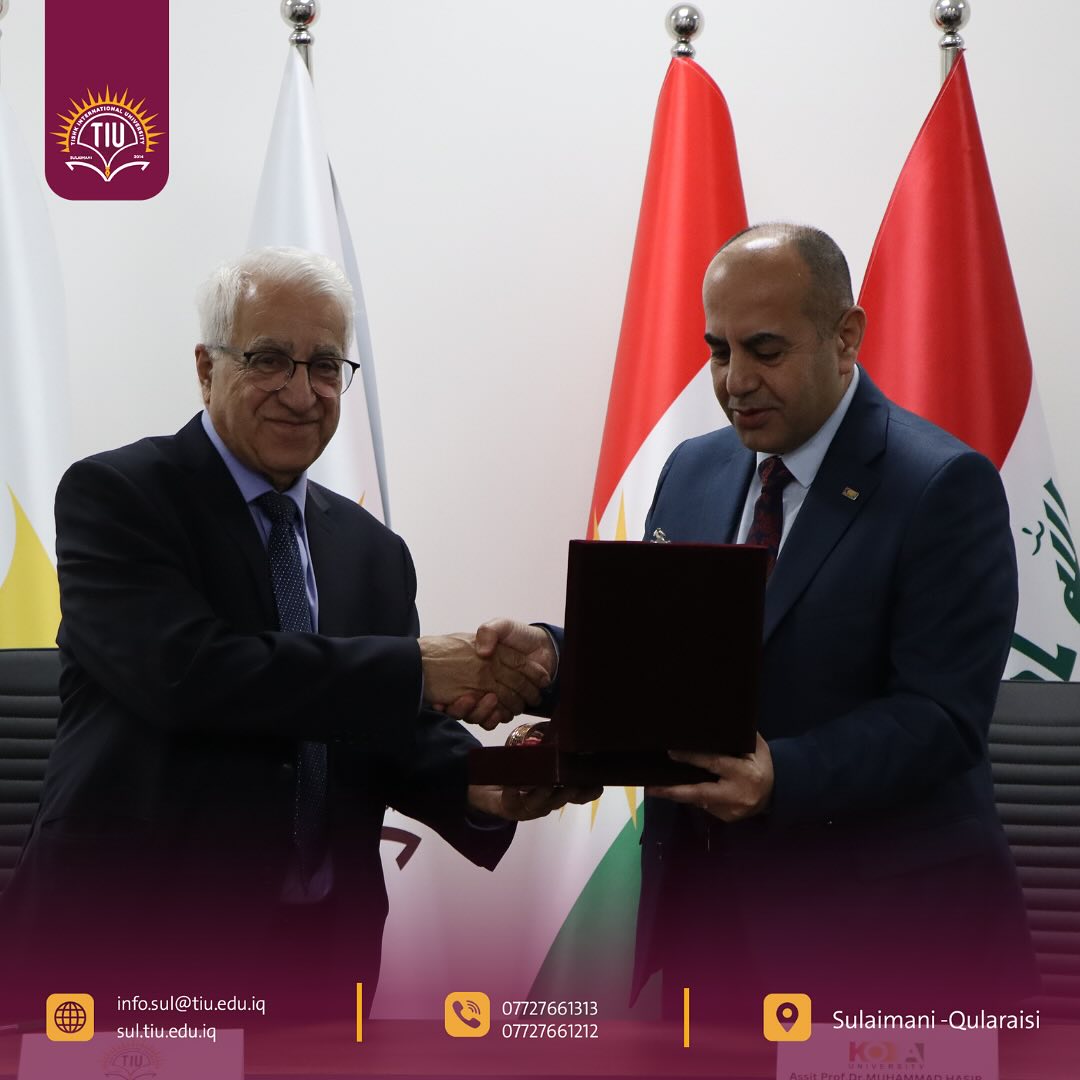 On February 3, 2025, Tishk International University Sulaimani (TIUS), represented by its President, Professor Dr. Khidir Masum Hawrami, and Koya University, represented by its President, Assist. Prof. Dr. Mohammed H.S. Zangana, signed a Memorandum of Understanding (MOU). This agreement marks a significant step towards enhancing relations and fostering academic and cultural exchange between the two institutions.