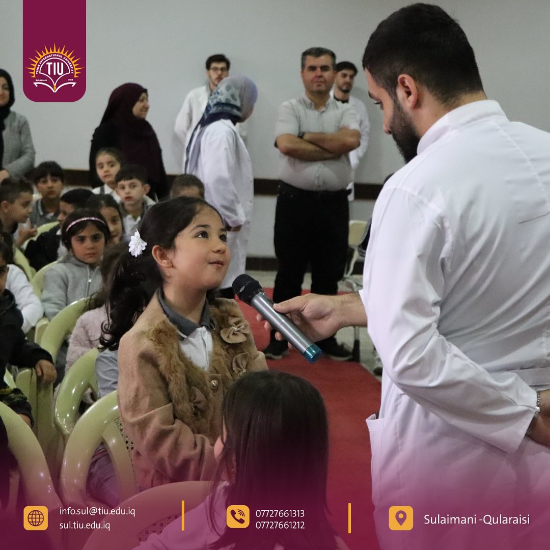 On April 13, 2025, students from the Medical Analysis Department at Tishk International University (TIU), under the supervision of Dr. Srwa Ali, successfully carried out a health education project by visiting three elementary schools in Sulaimani. The initiative aimed to raise health awareness, prevention, and hygiene practices among young students in the community.