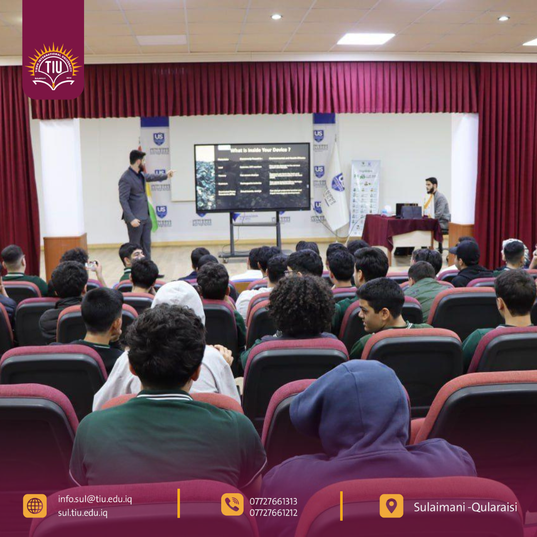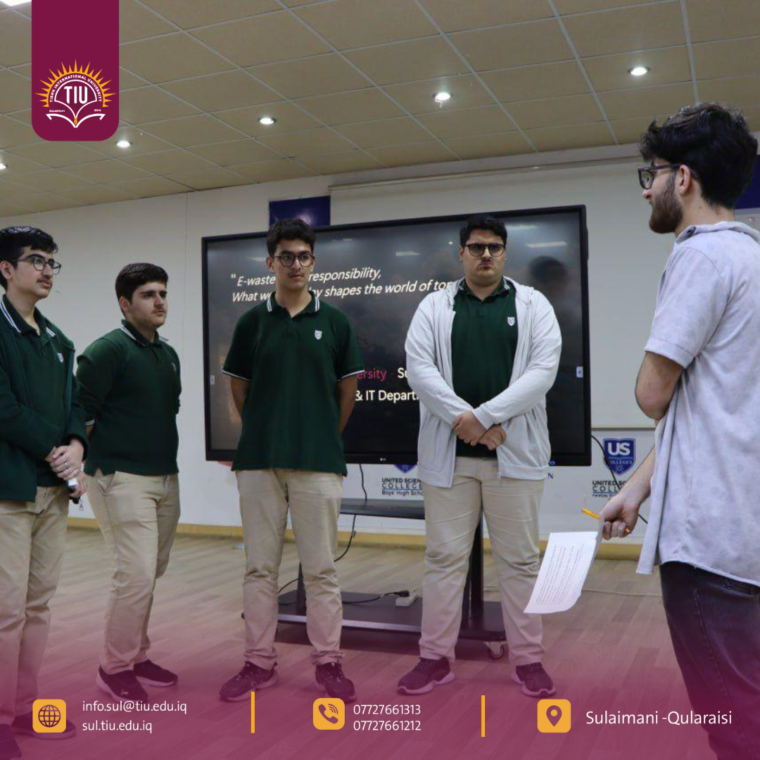 Sulaimani, Iraq – A dedicated team of Computer Engineering and IT students from Tishk International University – Sulaimani (TIUS) successfully held a community project seminar on Electronic Waste (E-Waste) for students at Salahaddin Ayyubi Boys’ High School on April 30, 2025. The seminar was part of the university’s commitment to social responsibility and community engagement.