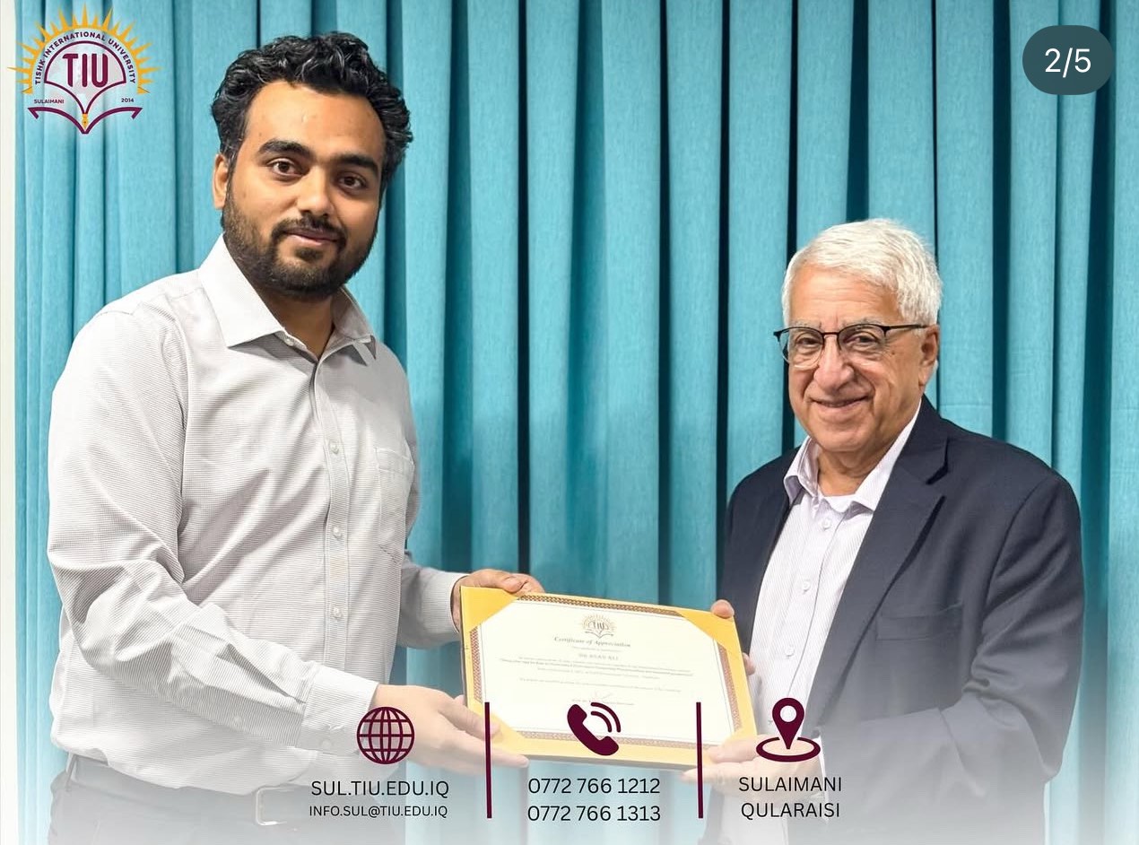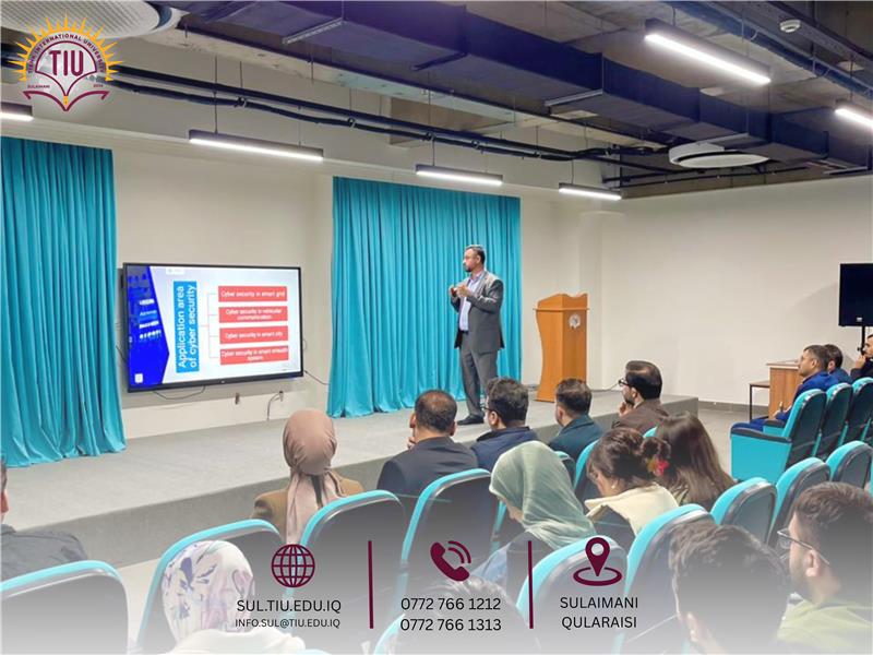 The workshop aimed to raise awareness of modern cybersecurity challenges and highlight practical strategies for protecting digital systems and data. Mr. Hemin Sardar, Lecturer at Charmo University, delivered a session on cybersecurity risks, emerging technologies, and strategic defense solutions. Assistant Professor Dr. Aso Aladin from Tishk International University followed with a presentation on the role of generative artificial intelligence in modern cyber threat detection.