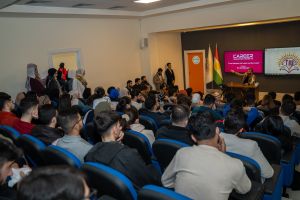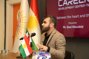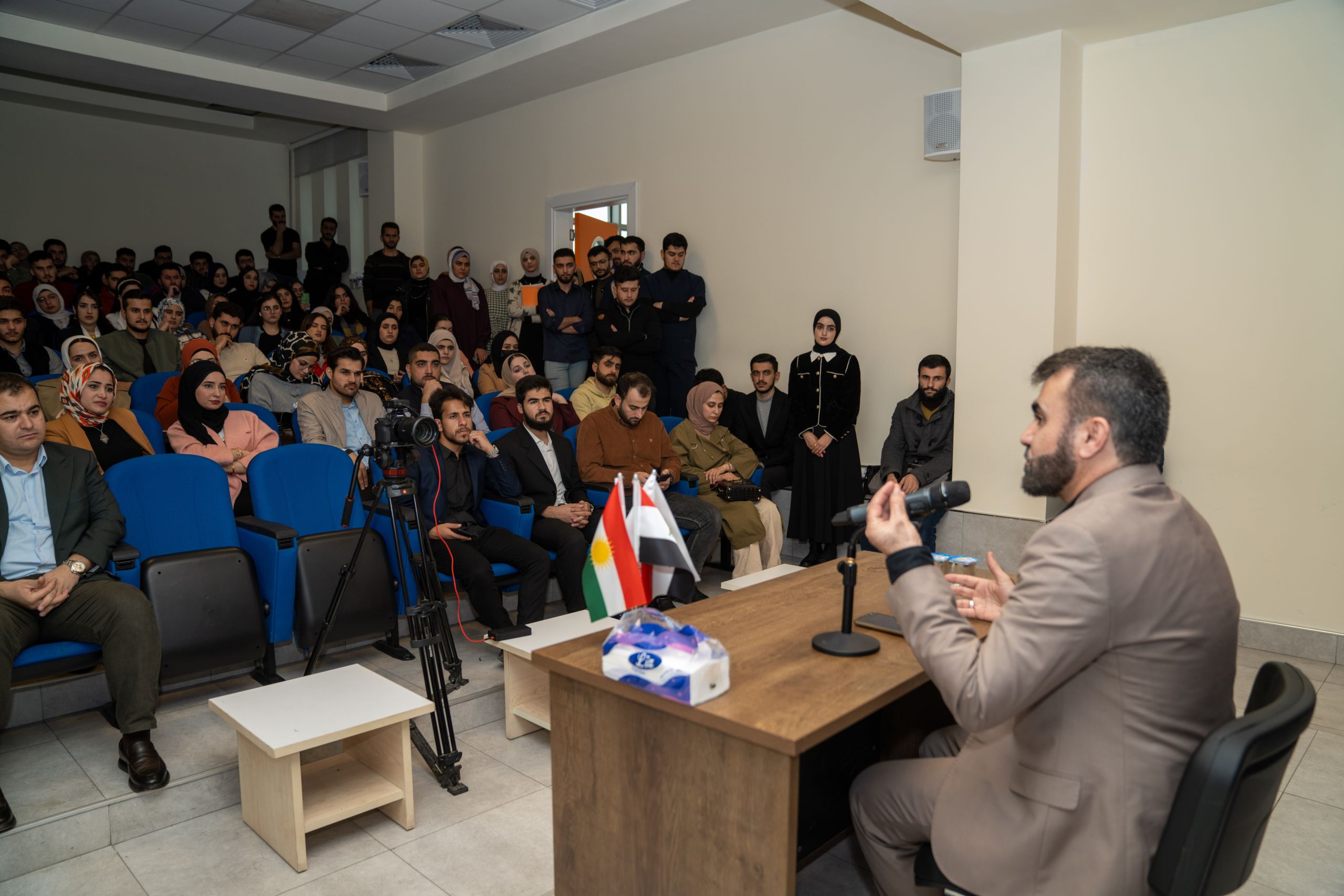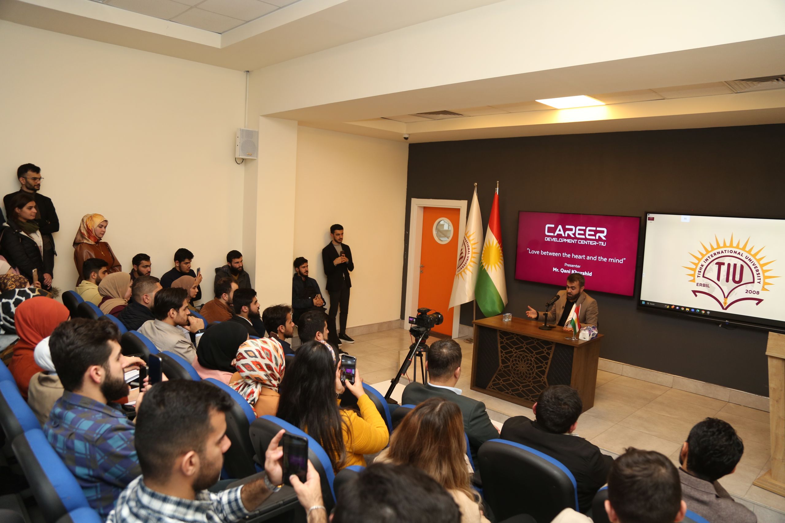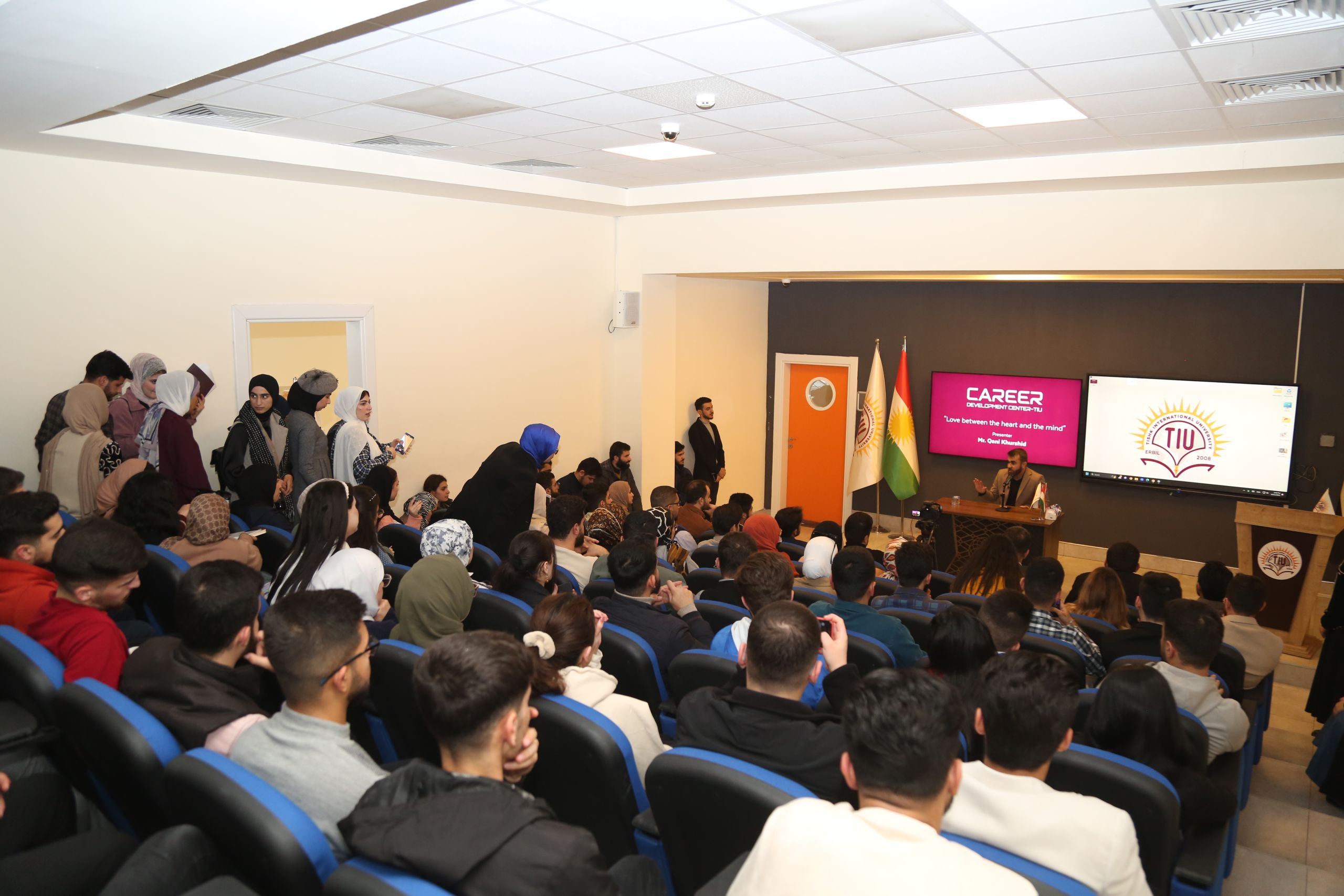 The Career Development Center (CDC), Dean of Students at Tishk International University (TIU), hosted a seminar titled Love Between the Heart and the Mind, featuring the writer Mr. Qanie Khurshid, held on December 11th, 2023. In his engaging talk, Mr. Khurshid delved into the intricate dynamics of love, shedding light on the conflicts that often emerge between the heart and the mind. He eloquently explored the nuanced interplay of emotions and logic, highlighting the delicate balance required for navigating the complexities of love. Attendees gained valuable insights into understanding and reconciling the conflicts that can arise in matters of the heart. The seminar provided a unique opportunity for students to reflect on the multifaceted nature of relationships and the role of both emotion and rationality in the realm of love.