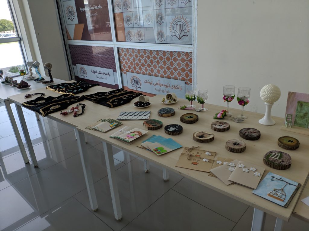 Tishk International University hosted an exhibition for handcraft, which was supervised and held by the help of Dean of Students on the day 5th May, 2019. The exhibition materials were prepared by a Tishk alumni Miss Noora. It was in the entrance of the main building, and started from 10:00 to 15:00. With classic music in the background there was a serene environment that went hand in hand with event. Next, Dr. Idriss Hadi and some other academic staff also attended in cutting the red ribbon and touring around, they were mesmerized by the delicate and beautiful handcrafts.