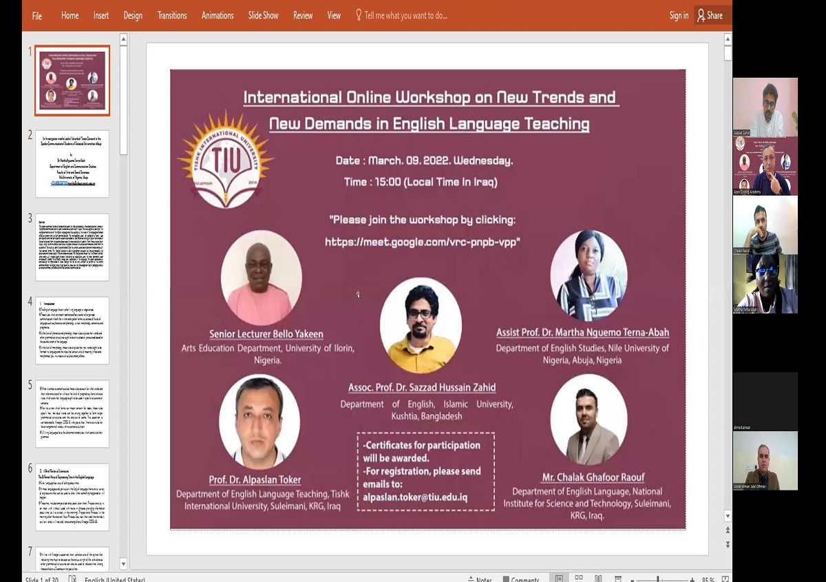 International Online Workshop in partnership with University of Sulaimani