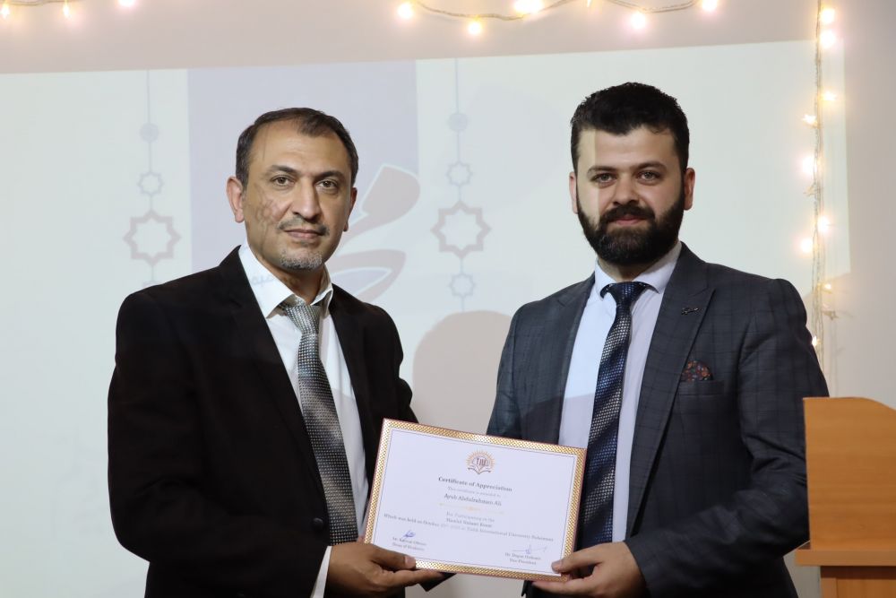 The event commenced with a recitation of the Holy Quran, eloquently delivered by an alumna from Tishk International University-Sulaimani (TIUS). The program then gracefully transitioned to an enlightening speech by Dr. Bakhtiyar Talabany, who delved into the life of the Prophet Muhammad (PBUH) and extracted valuable lessons on success and virtue that resonate with the Prophet’s (PBUH) teachings.