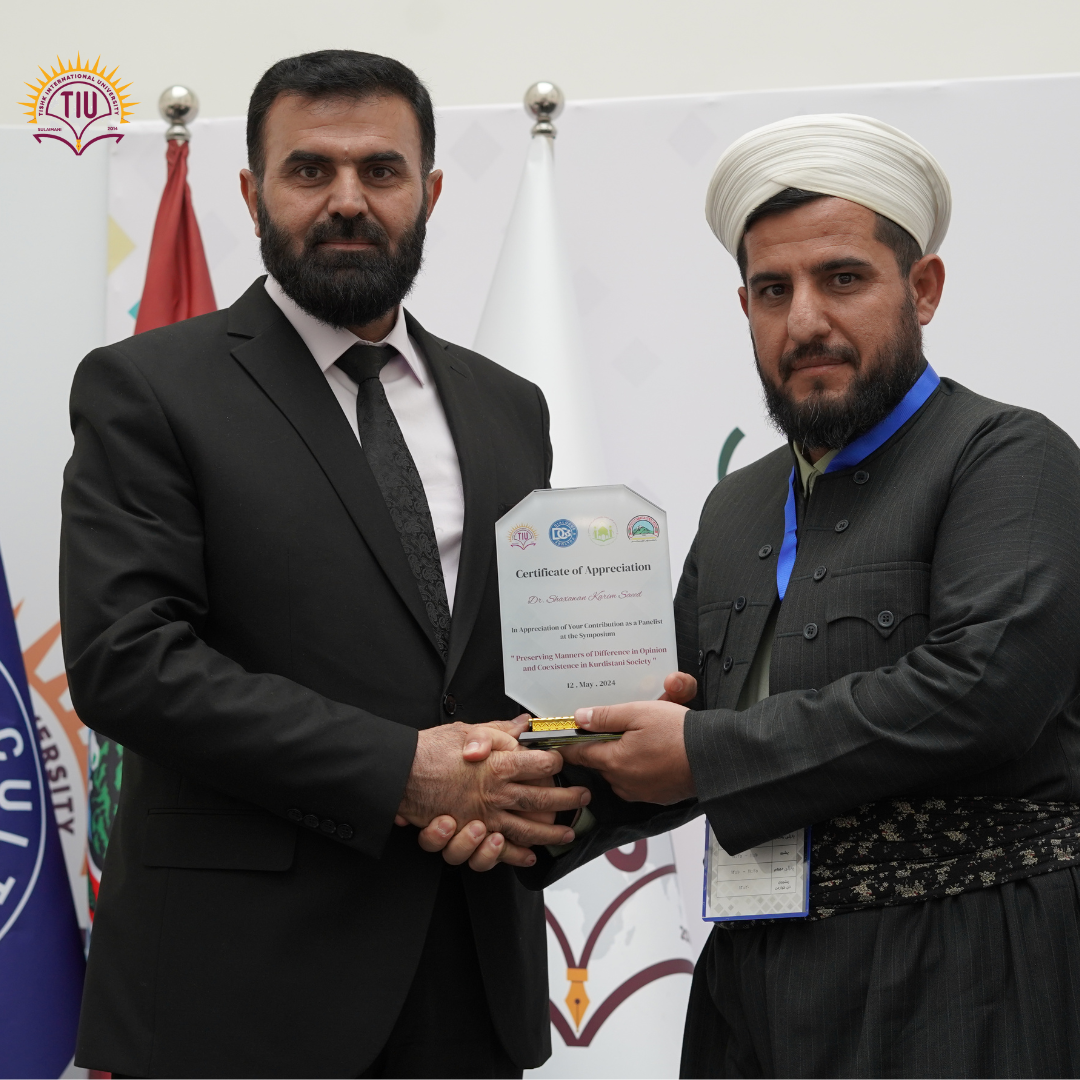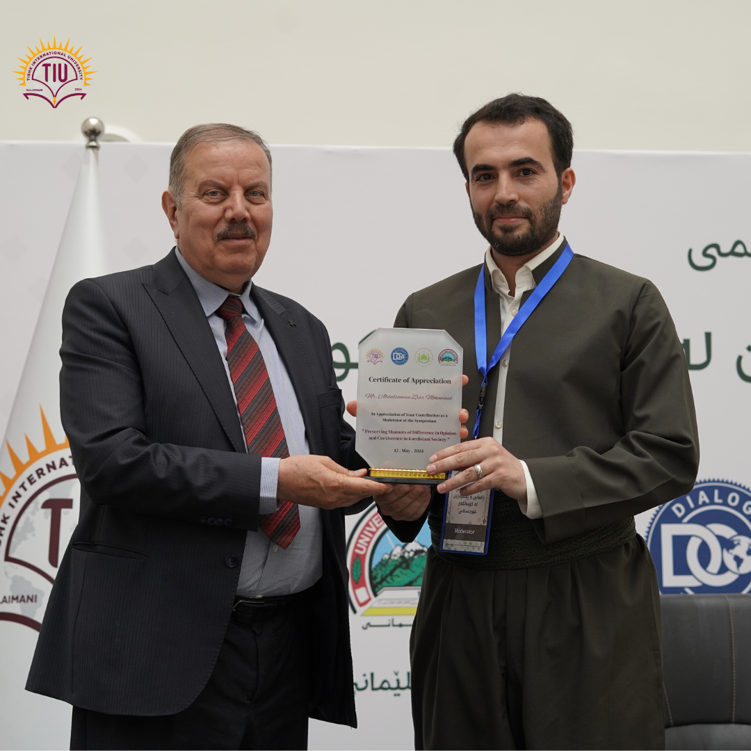 In collaboration with the Dialogue & Culture Organization, the College of Islamic Science of the University of Sulaimani, and the Directorate of Endowment of Sulaimani, Tishk International University-Sulaimani (TIU-S) successfully hosted a symposium titled “Preserving Manners of Difference in Opinion and Coexistence in Kurdistani Society”, held on May 12th, 2024.